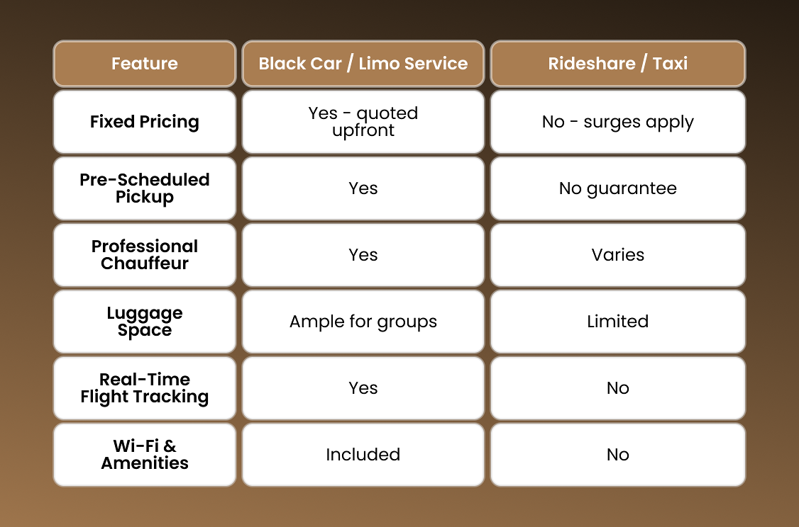 For international travelers who may not be familiar with the airport layout, a meet-and-greet option is invaluable. Your chauffeur meets you inside the terminal, helps with luggage, and guides you directly to the vehicle. No navigating unfamiliar signage after a long-haul flight.
